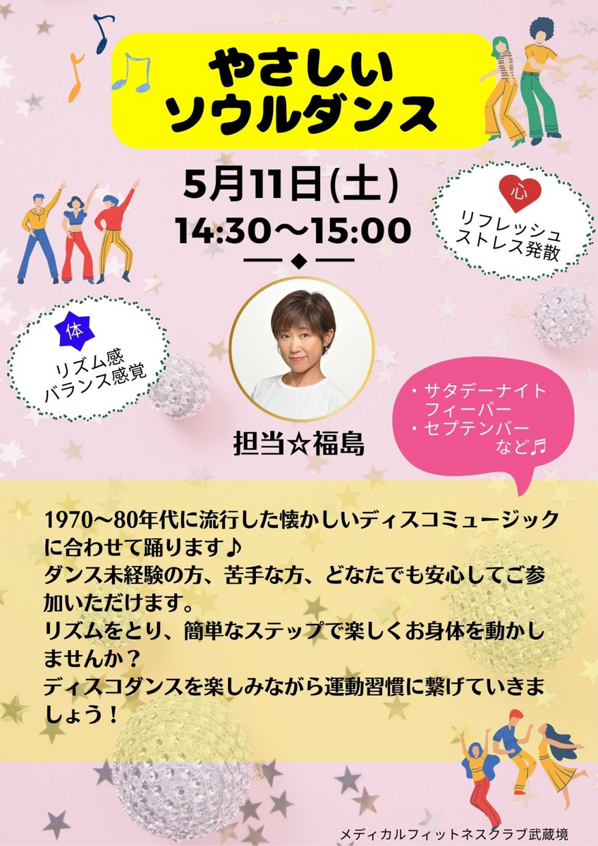 1970~80年代に流行した懐かしいディスコミュージックに合わせて踊ります。